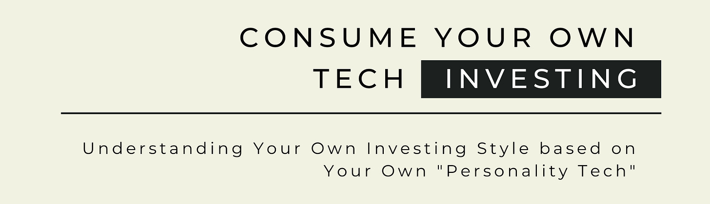 Consume Your Own Tech Investing covers the intersection between human psychology and investing. It is about managing an investment portfolio based on one's own "personality tech"—how one is wired mentally, emotionally, and instinctively—to optimize coherence.