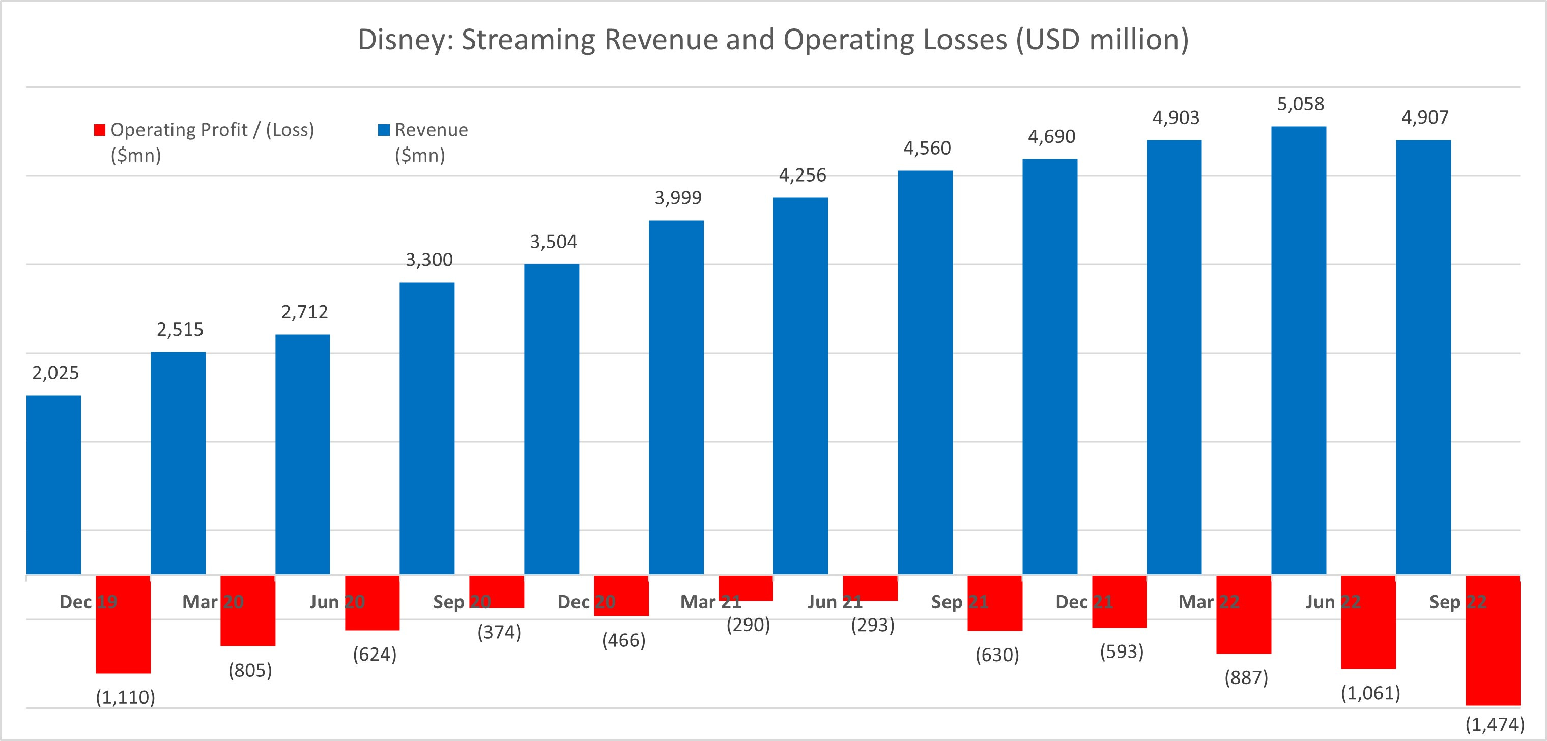 Disney’s structural pivot into streaming was initially applauded by the markets, especially with the resounding success of Disney+ worldwide. It is an essential reinvention of its business model to stay relevant in the DTC and subscription economy. The costs to create a competitor to Netflix ($NFLX) were known, and breakeven was only going to happen in FY 2024. Yet, when Q4 2022 earnings came out, the market was no longer prepared to stomach larger DTC losses, even with Disney management assuring investors that they had peaked in Q4 2022. Markets today demand growing profits, so the original narrative that Disney had spun - even with the speed at which subscribers had grown - is no longer an investment highlight.